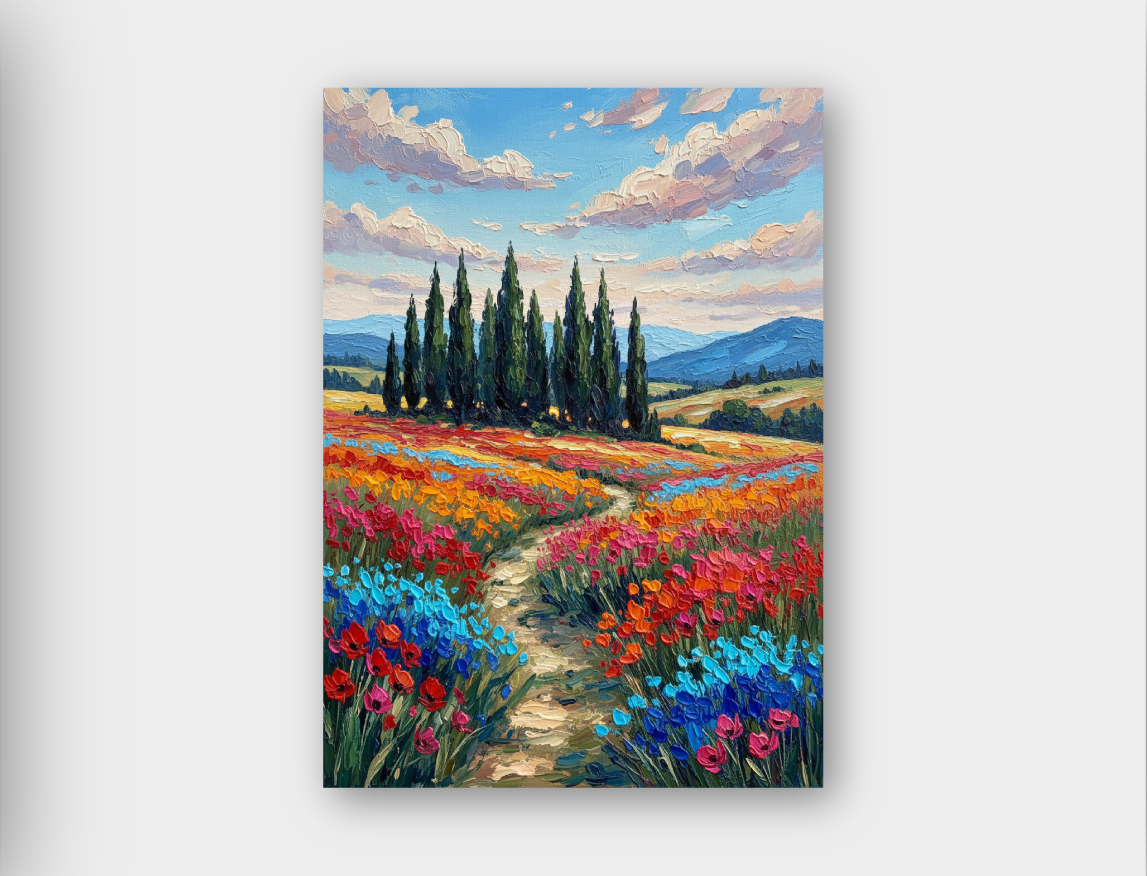 Our canvases are printed with fade-resistant inks on premium cotton blend, ensuring vibrant colors and longevity. Each piece is hand-wrapped for a gallery-grade finish.