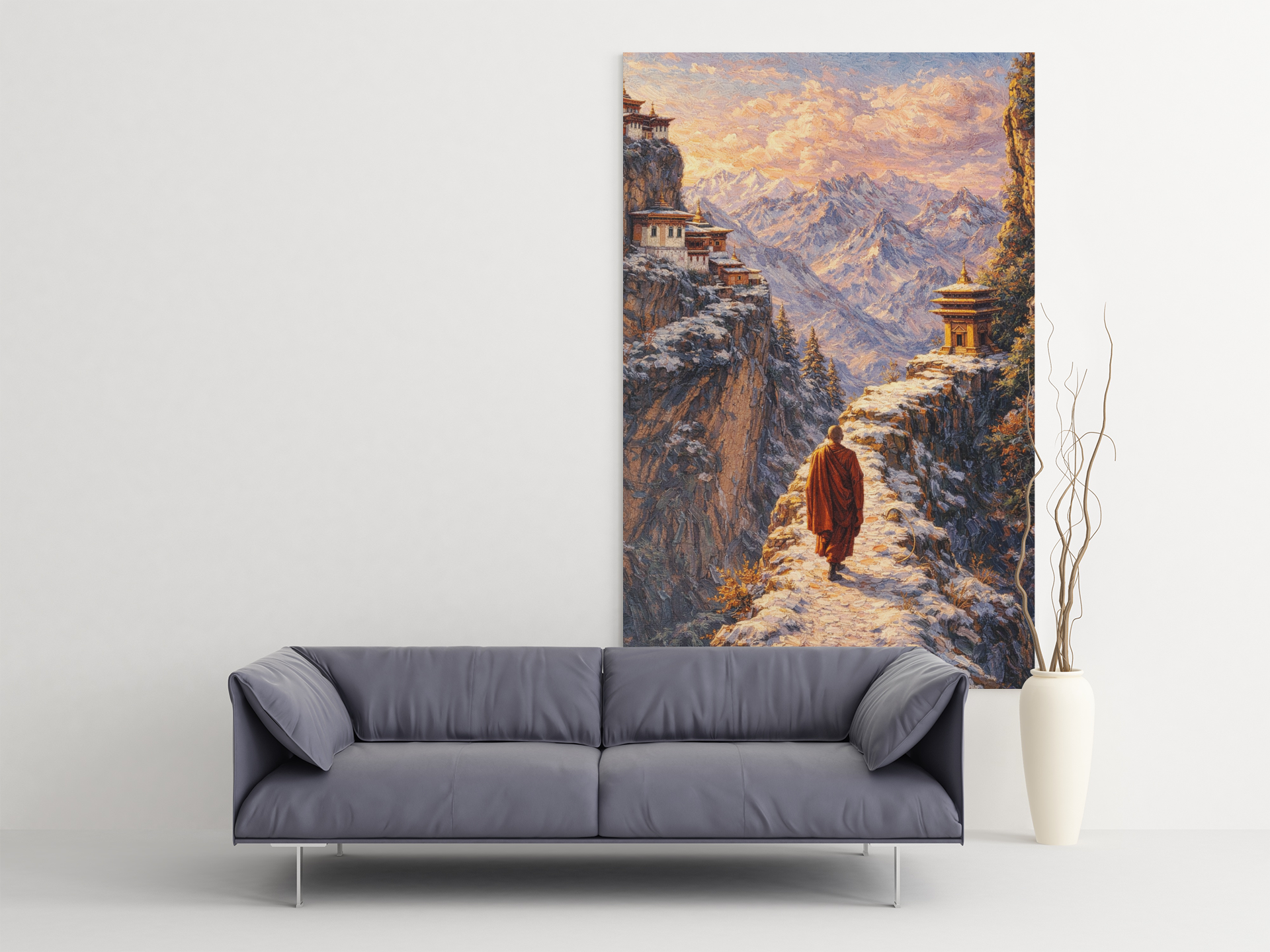 Our canvases are printed with fade-resistant inks on premium cotton blend, ensuring vibrant colors and longevity. Each piece is hand-wrapped for a gallery-grade finish.